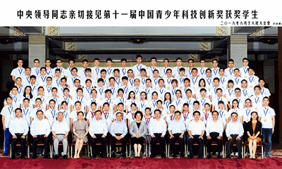 图6 国务院副总理孙春兰接见第十一届中国青少年科技创新奖获奖者合影(第二排右起第3位为我校张曦文同学)