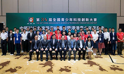 图7 十三届全国政协副主席、致公党中央主席、中国科学技术协会主席万钢同志接见第34届全国青少年科技创新大赛获奖者合影(第二排右起第4位为我校张曦文同学)
